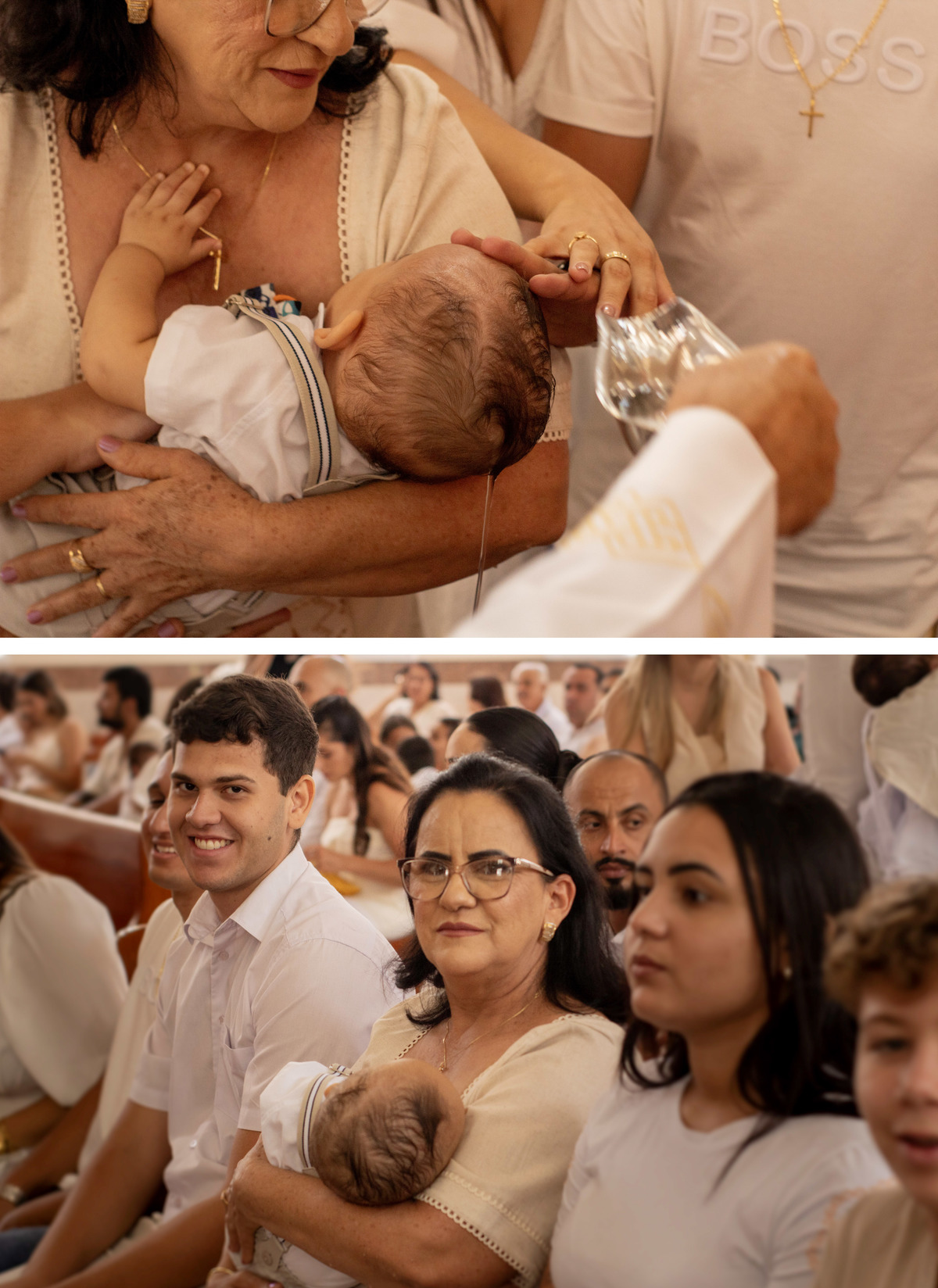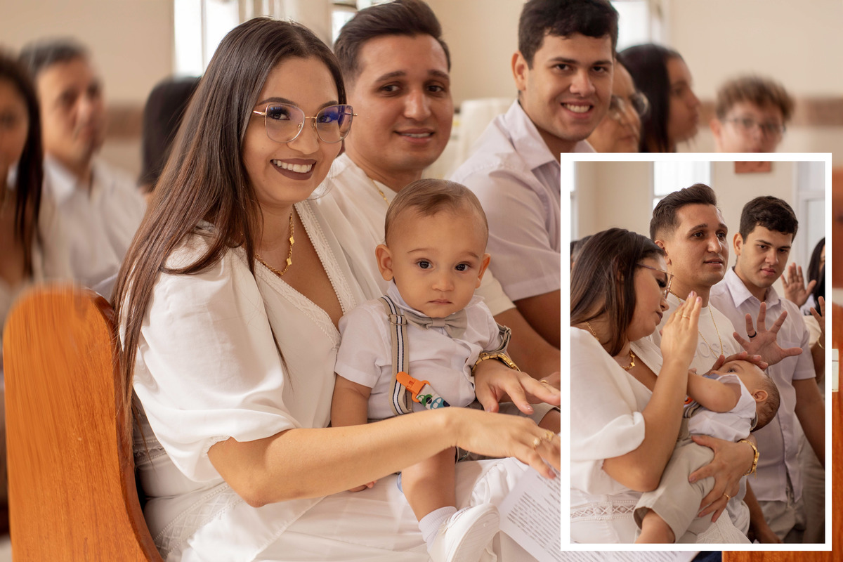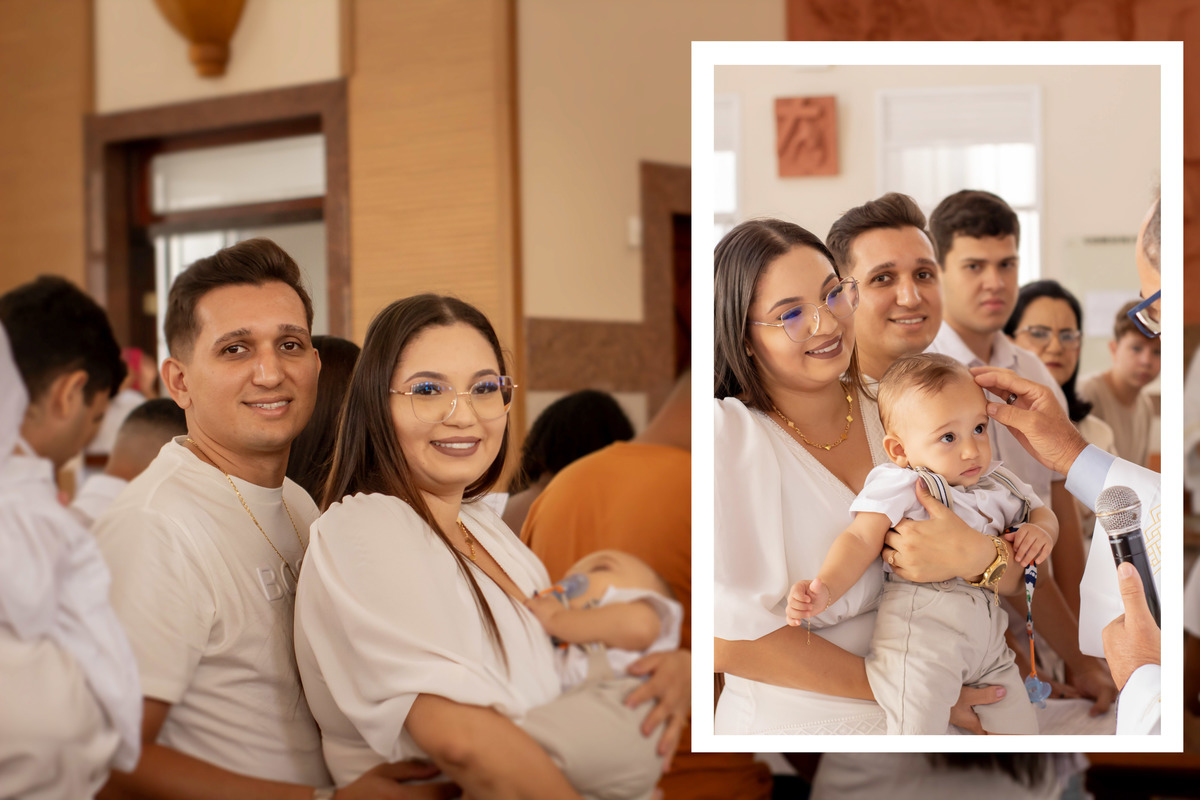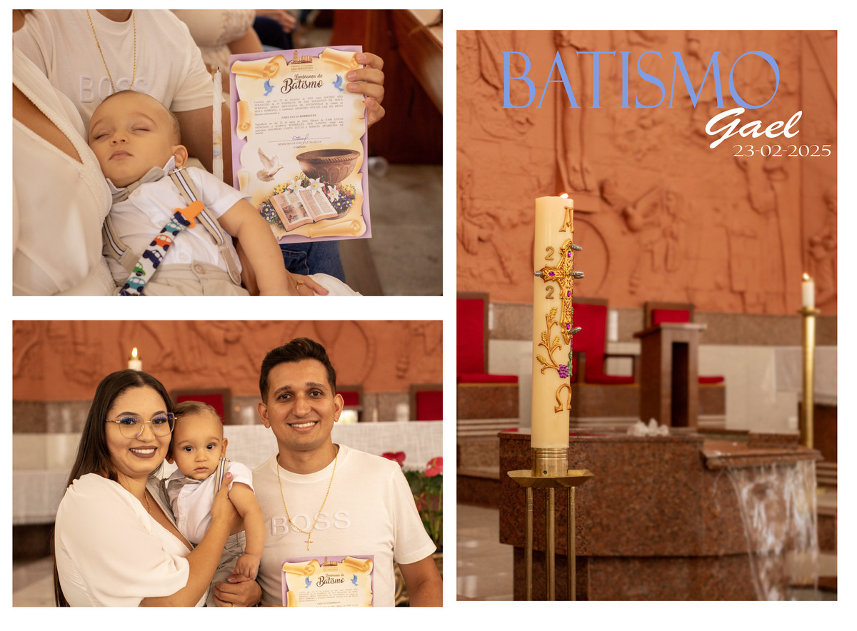 Registros encantadores do Gael recebendo o Santíssimo Sacramento do batismo, momentos importantes que foram eternizados.