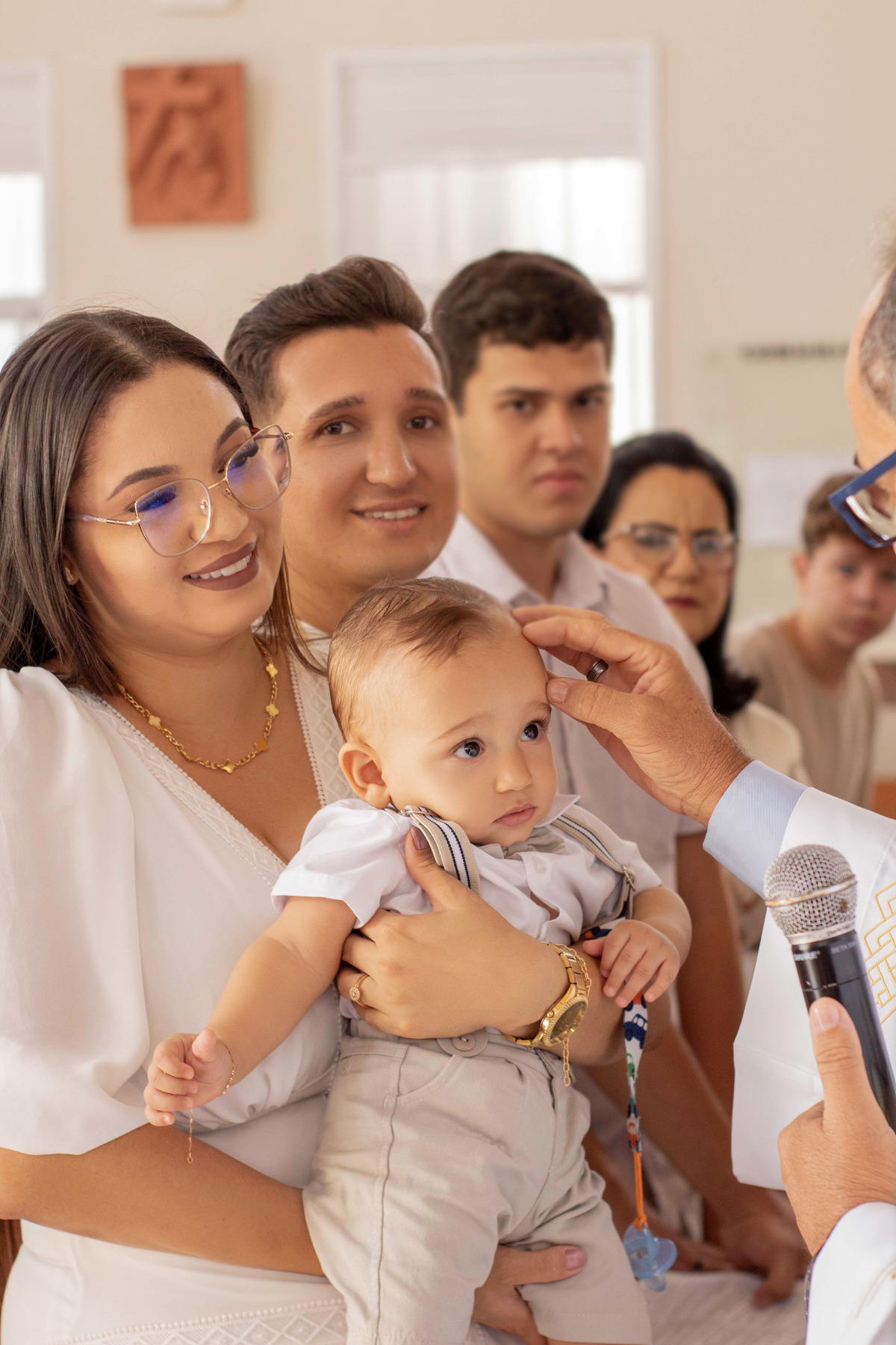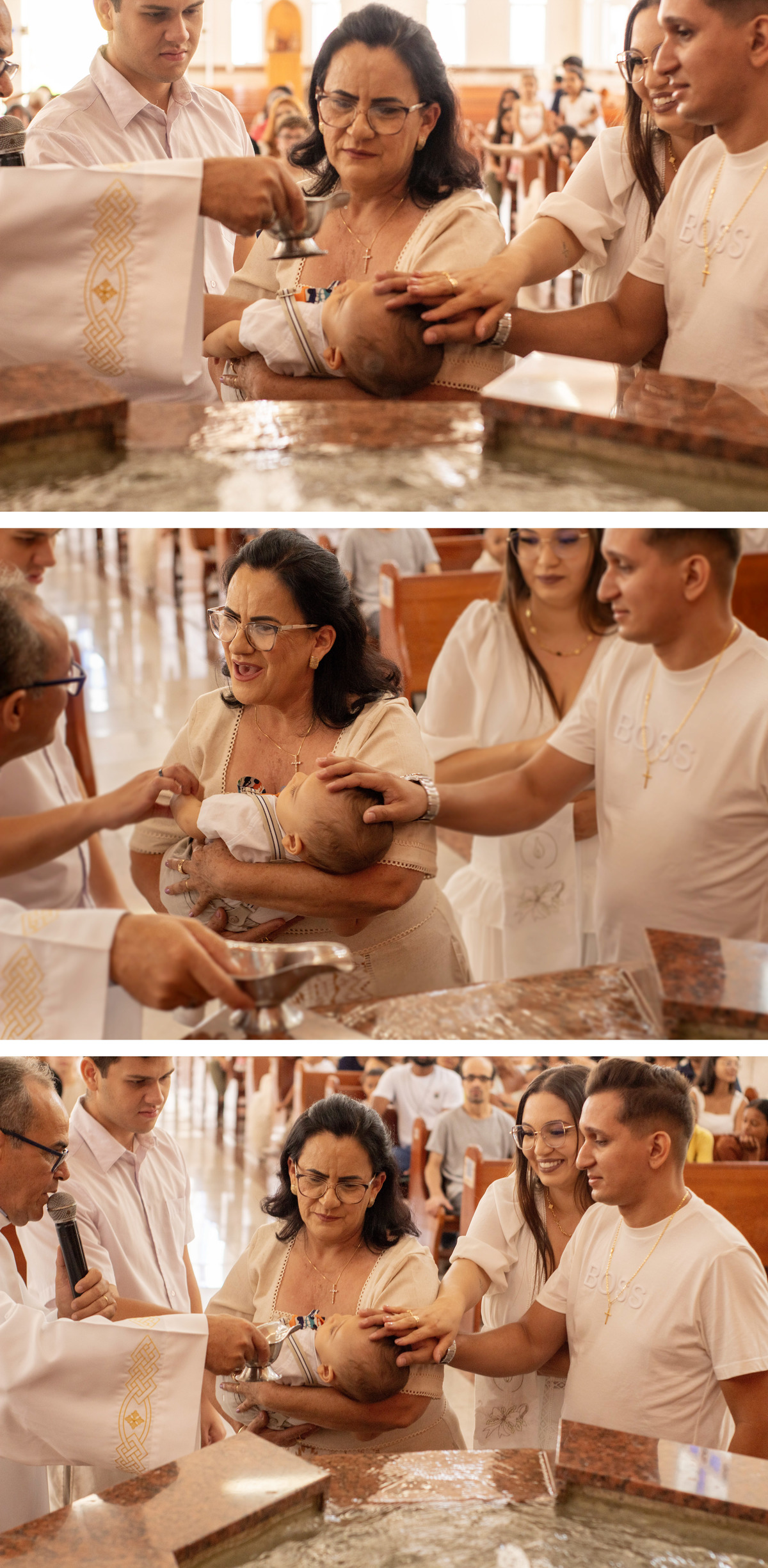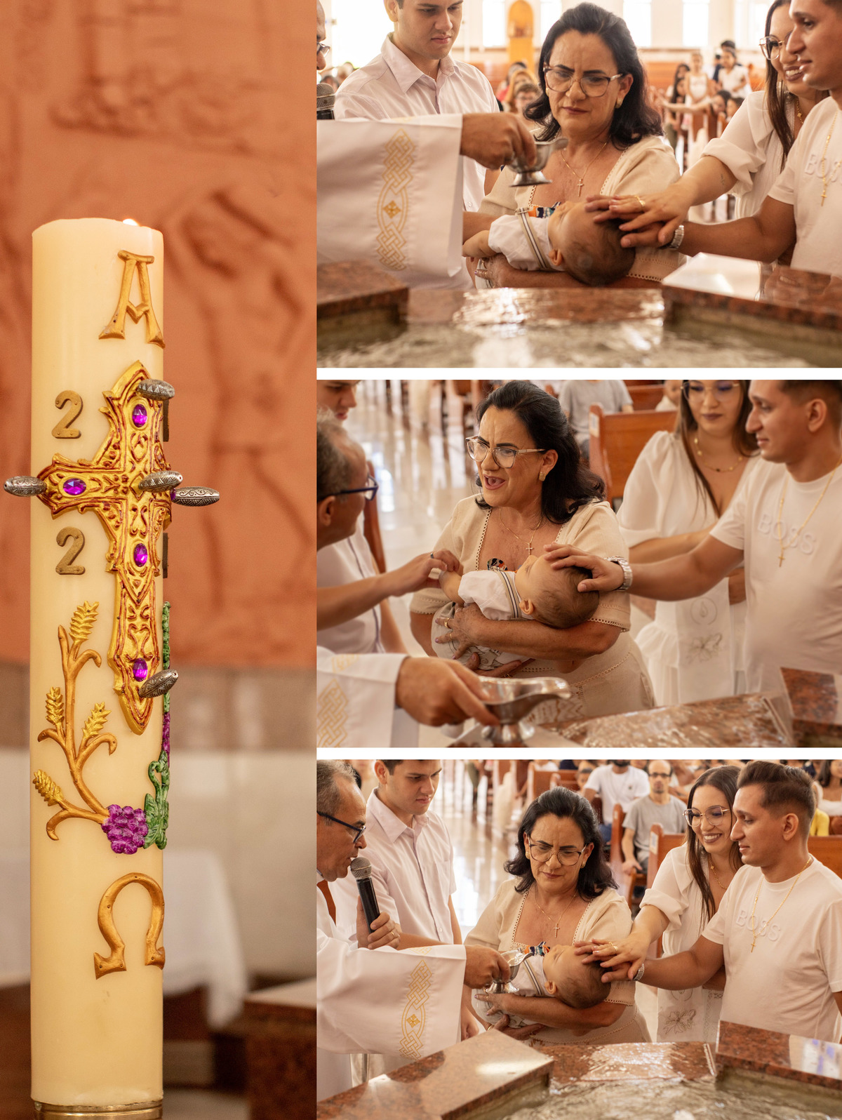 Registros encantadores do Gael recebendo o Santíssimo Sacramento do batismo, momentos importantes que foram eternizados.